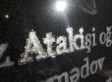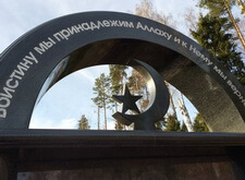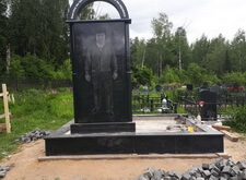 Собираем лавочку, устанавливаем её напротив надгробья. Цветник у подножья мемориальной стелы наполняем светлыми камнями. Под полукруглую арку памятника укрепляем вырезанную из гранита фигуру полумесяца.