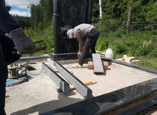 Снова возвращаемся к могиле. Устанавливаем подставку, на которой будет размещён памятник, цементируем.